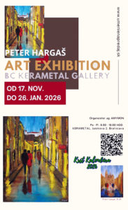 Výstava mojich obrazov pod názvom „Peter Hargaš – ART EXHIBITION – BC Kerametal Gallery, Bratislava“ bola slávnostne otvorená na vernisáži 2.12.2025. Otvorenie výstavy bolo spojené s krstom môjho kalendára na rok 2026. Výstavu otvorila Ľudmila Pašková a kalendár na rok 2026 krstila moja dcéra Deniska Hargašová. Výstava je otvorená od 17.11.2025 a bude prístupná do 26.01.2026.
